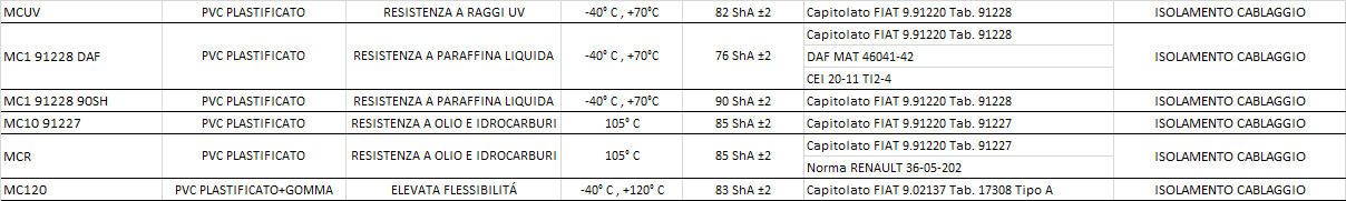 Poiché, come abbiamo visto, il primo requisito per le guaine isolanti per il settore automotive è la resistenza chimica, la scelta d’elezione ricade normalmente sulle guaine per cablaggi in PVC plastificato, che grazie all’introduzione di specifici additivi nella mescola plastica offrono un’eccellente capacità di far fronte alle aggressioni delle più diverse sostanze chimiche.